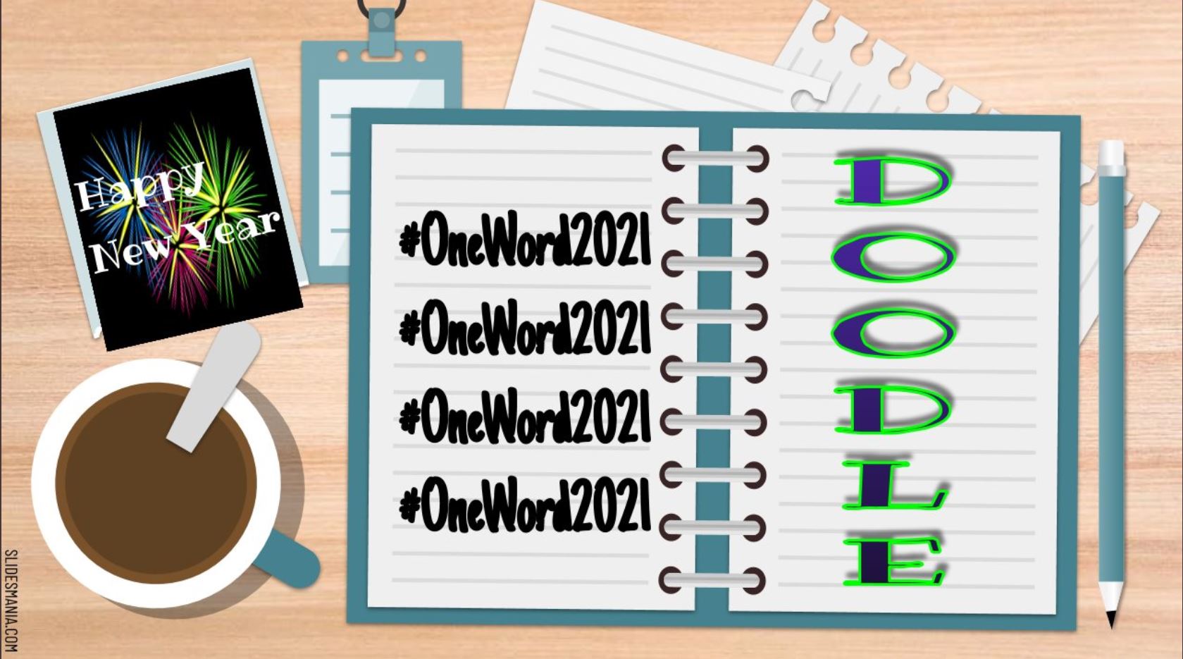 Joanna Waszkowska crafted a creative graphic to accompany her #OneWord2021 – slide
