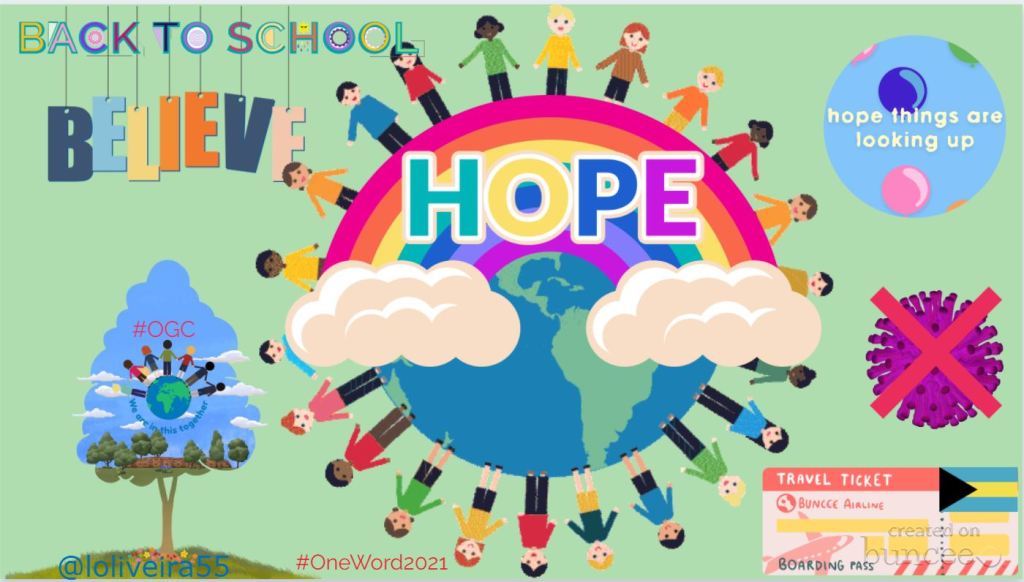 Laura Steinbrink noticed the request on Facebook and shared her #oneWord2021 with me there – thoughtful. She created it using @Buncee