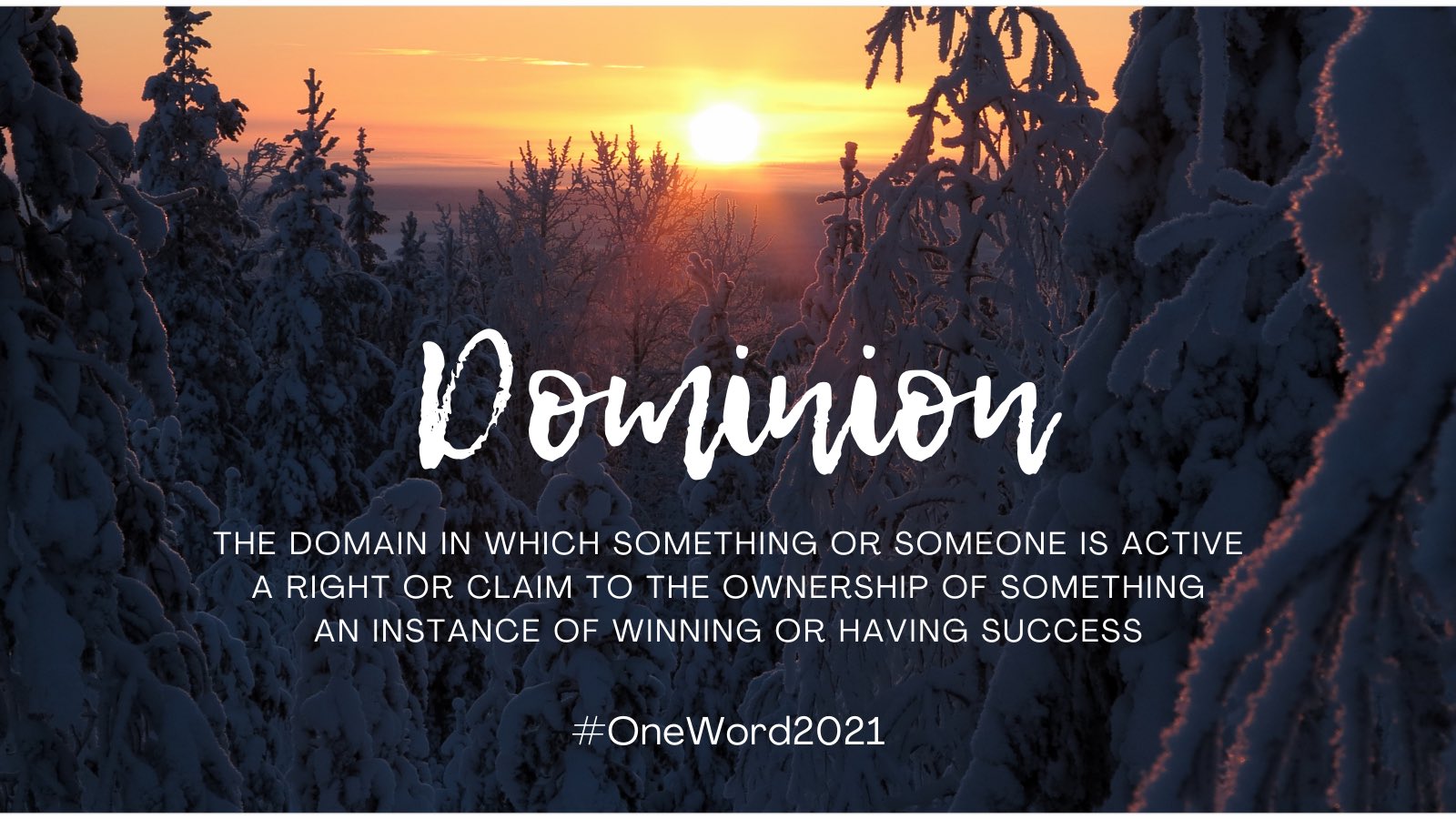 Michelle Kasun reflected and decided on dominion. Please take a minute and read the words in the graphic below that show her thoughts about this special word.