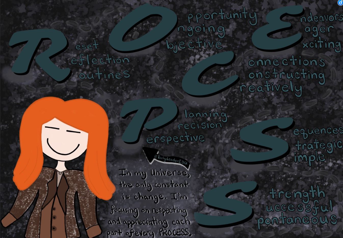 Michelle Dunlap reflected and selected a new word that matches with the new position she has of being a media specialist. Just check out the creative graphic she made that corresponds the word with her new adventure!