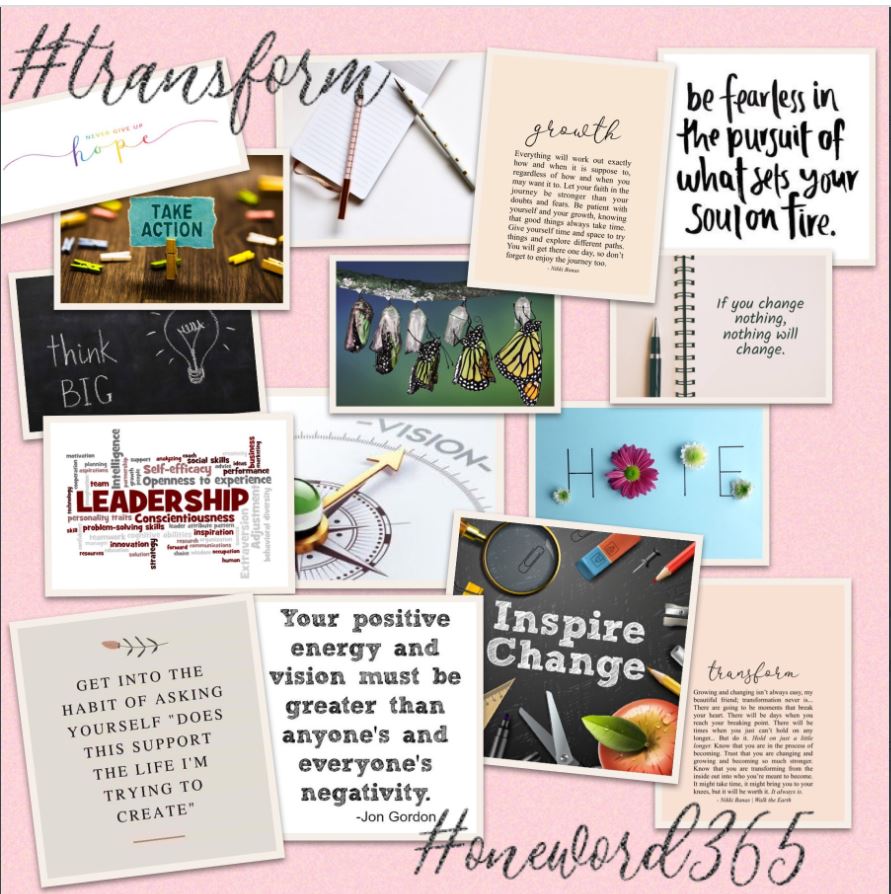 Carla Meyrink shared her word Transform. Check out all of the details she added about her word in the graphic.